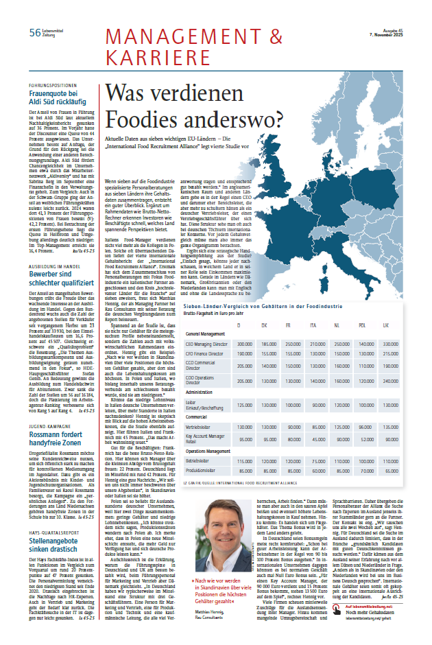 Lesen Sie den gesamten Artikel hier. (Erschienen in der LZ Lebensmittelzeitung Ausgabe 45 vom 07.11.2025).